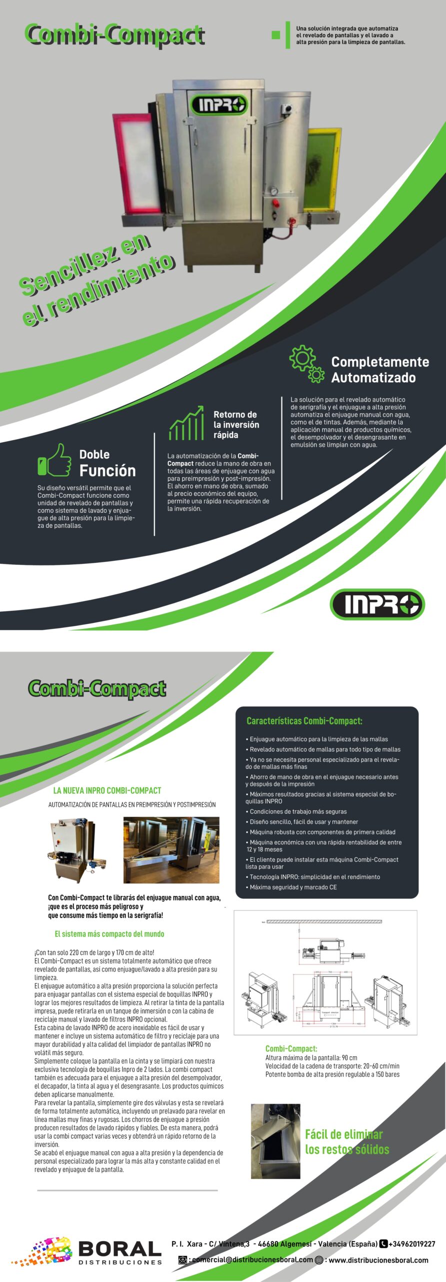 El sistema COMBI COMPACT ECO es válida tanto para el revelado de pantallas de hasta 200 hilos como para la limpieza y recuperado de pantallas.