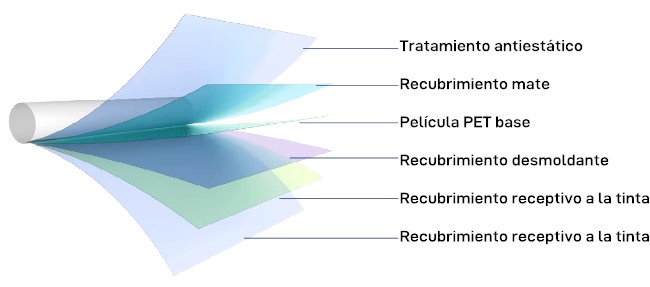 - 5ª y 6ª capa – Recubrimiento de absorción de tinta que estabiliza la misma para evitar corrimiento de la mism incluso en impresiones lentas y a baja temperatura